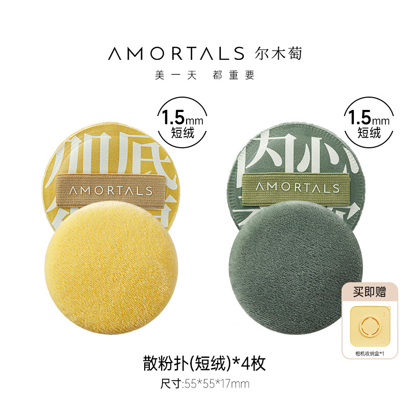 尔木萄(AMORTALS)定妆加分系列粉扑植绒粉扑粉饼定妆散蜜粉短绒清透替换专用 散粉扑(短绒圆形) 4枚 +收纳盒