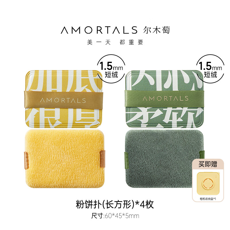 尔木萄(AMORTALS)定妆加分系列粉扑植绒粉扑粉饼定妆散蜜粉短绒清透替换专用 粉饼扑(短绒长方形) 4枚 +收纳盒