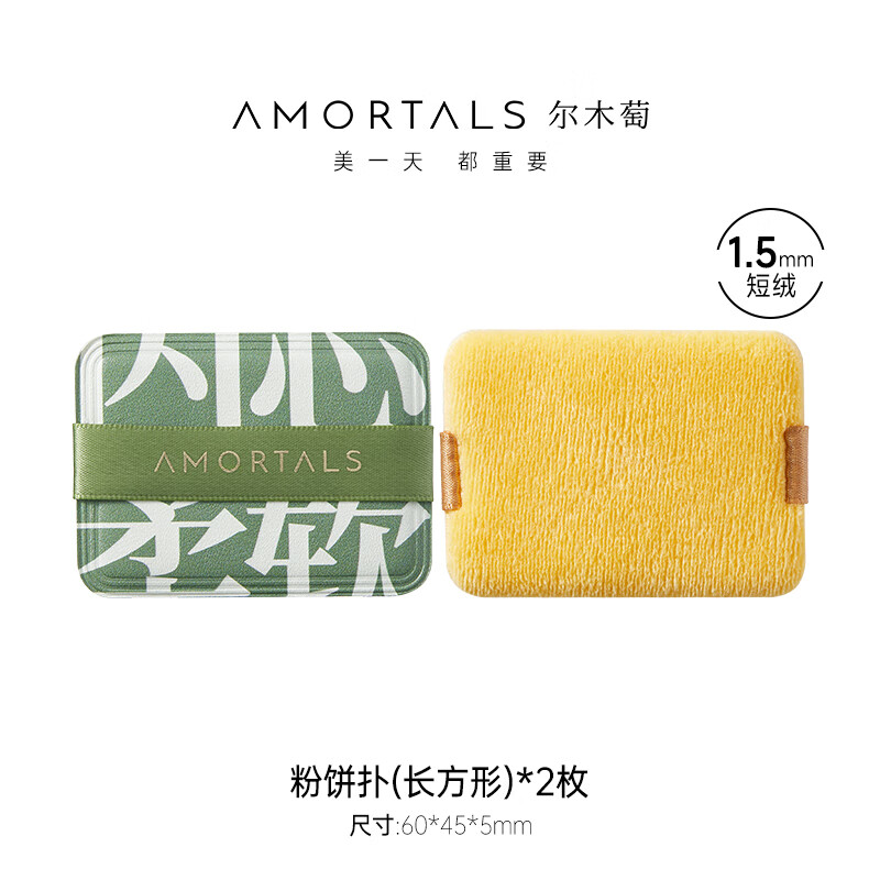尔木萄(AMORTALS)定妆加分系列粉扑植绒粉扑粉饼定妆散蜜粉短绒清透替换专用 粉饼扑(短绒长方形) 2枚