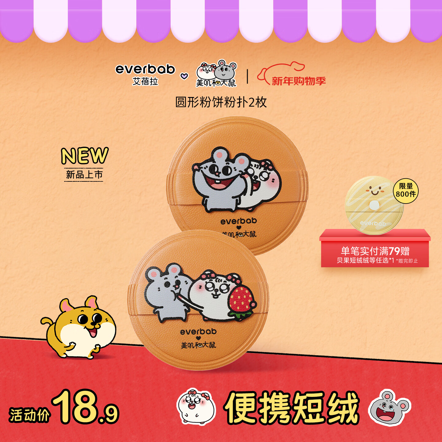 everbab艾蓓拉圆形短绒粉饼定妆粉扑美妆蛋美叽和大鼠联名款(两只装)