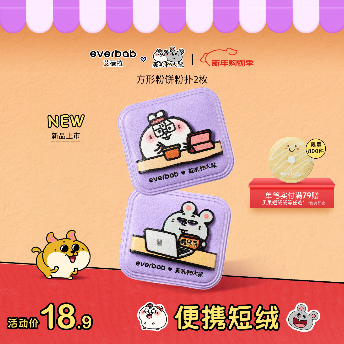 everbab艾蓓拉方形短绒粉饼粉扑定妆粉扑美妆蛋美叽和大鼠联名(两只装)