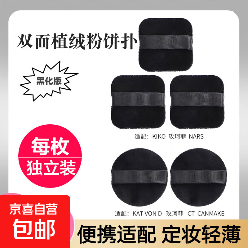 双面植绒粉扑黑化版不掉绒取粉力强替换蜜粉饼扑脸部定妆柔软短绒 双面植绒粉饼扑 2个 /方形