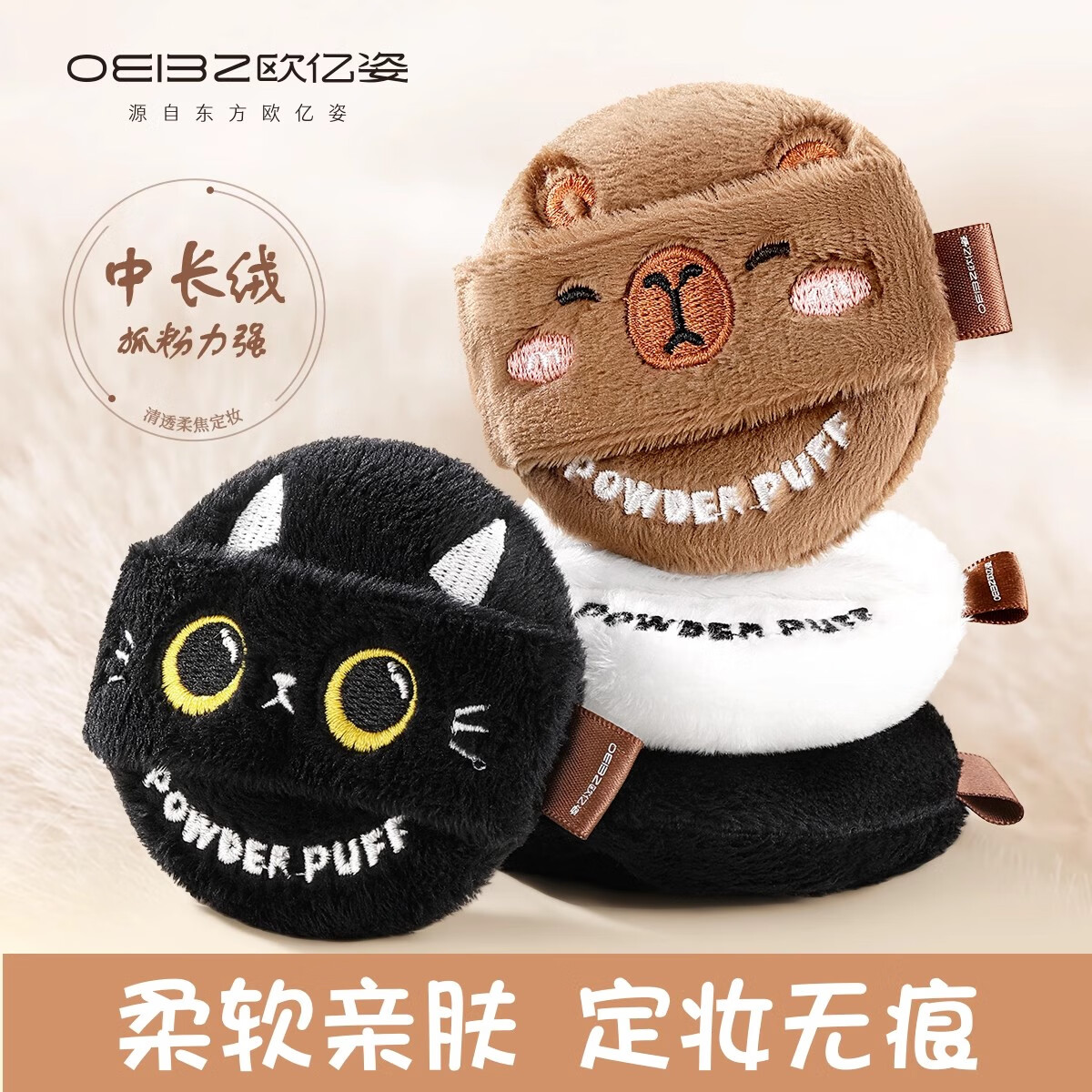 欧亿姿(oeiez)卡通散粉扑蜜粉扑定妆粉扑双面植绒柔软长绒粉扑动物系列强抓粉力 定妆粉扑 1个 【小黑猫】