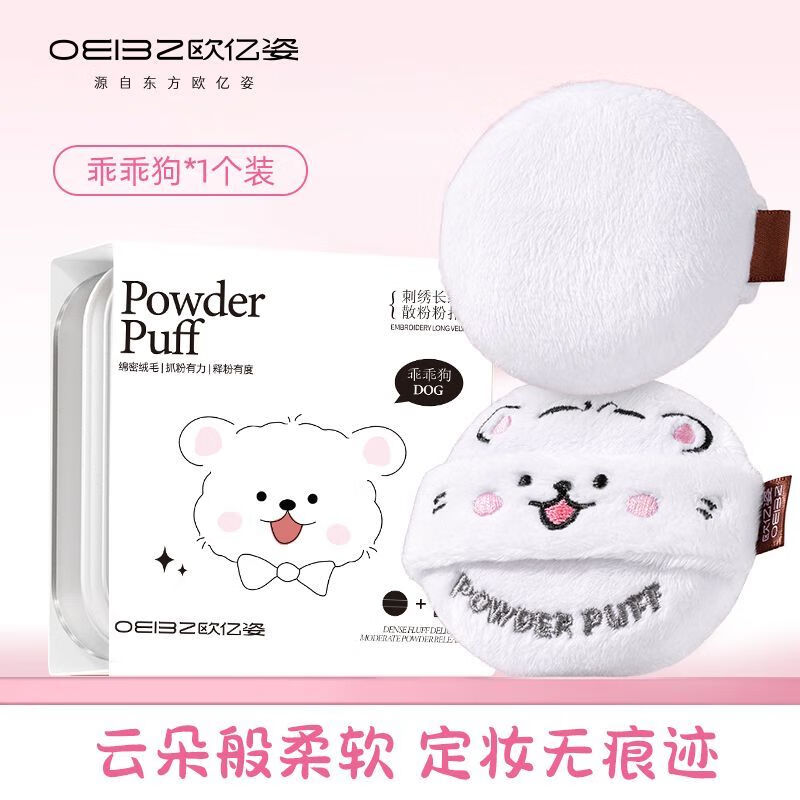 欧亿姿(oeiez)卡通散粉扑蜜粉扑定妆粉扑双面植绒柔软长绒粉扑动物系列强抓粉力 定妆粉扑 1个 【乖乖狗】