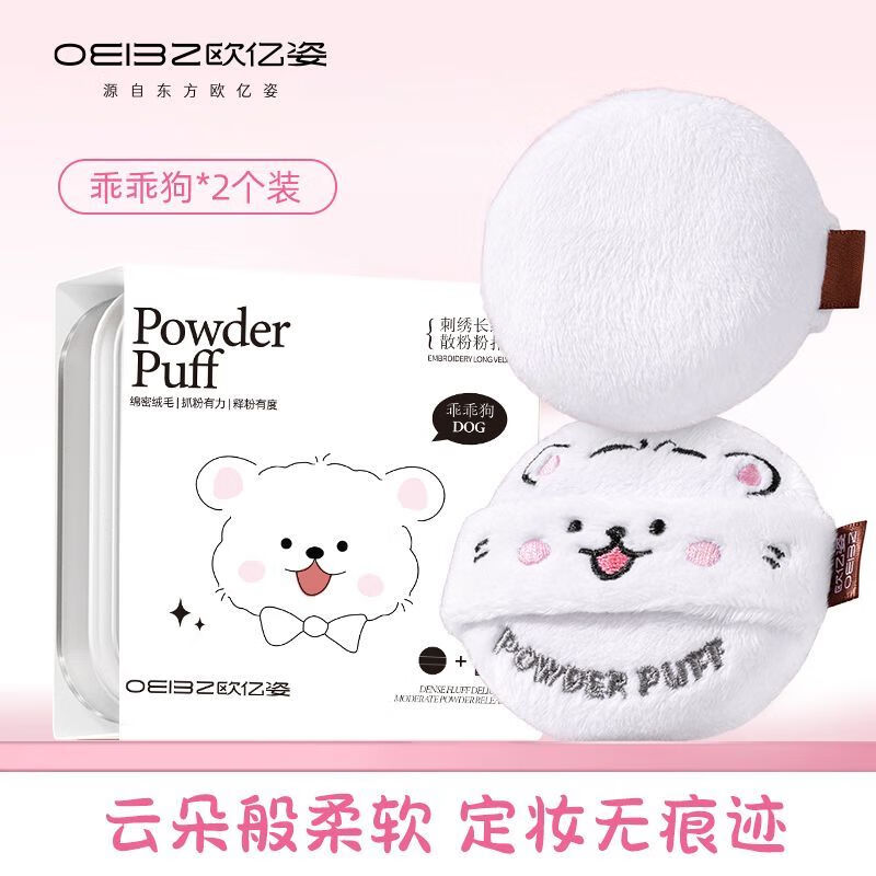 欧亿姿(oeiez)卡通散粉扑蜜粉扑定妆粉扑双面植绒柔软长绒粉扑动物系列强抓粉力 定妆粉扑 2个 【乖乖狗】