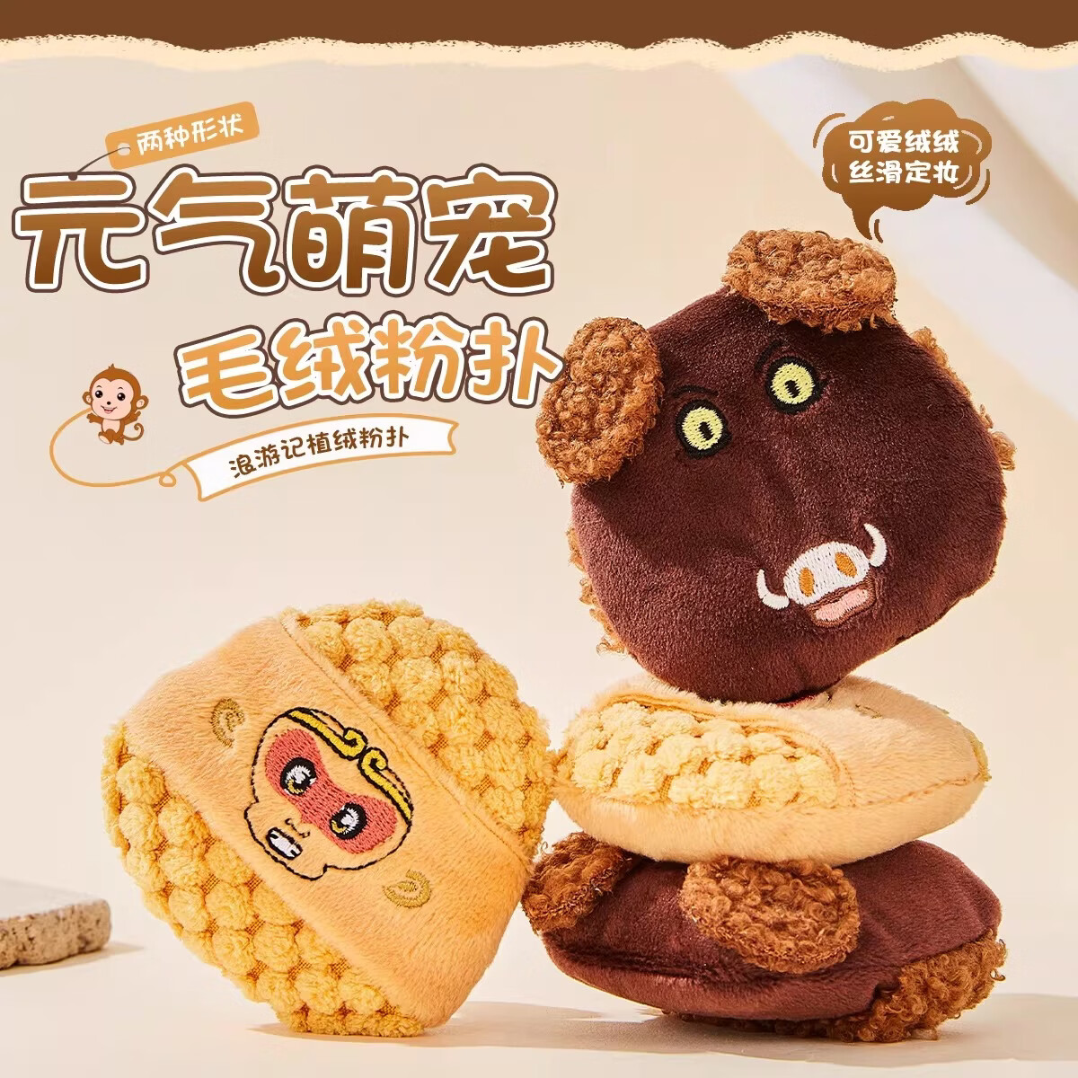 格蒙(GECOMO)浪游记植绒粉扑长绒腮红粉饼定妆气垫粉扑化妆定妆专用美妆工具 【机智猩】独立包装 1枚