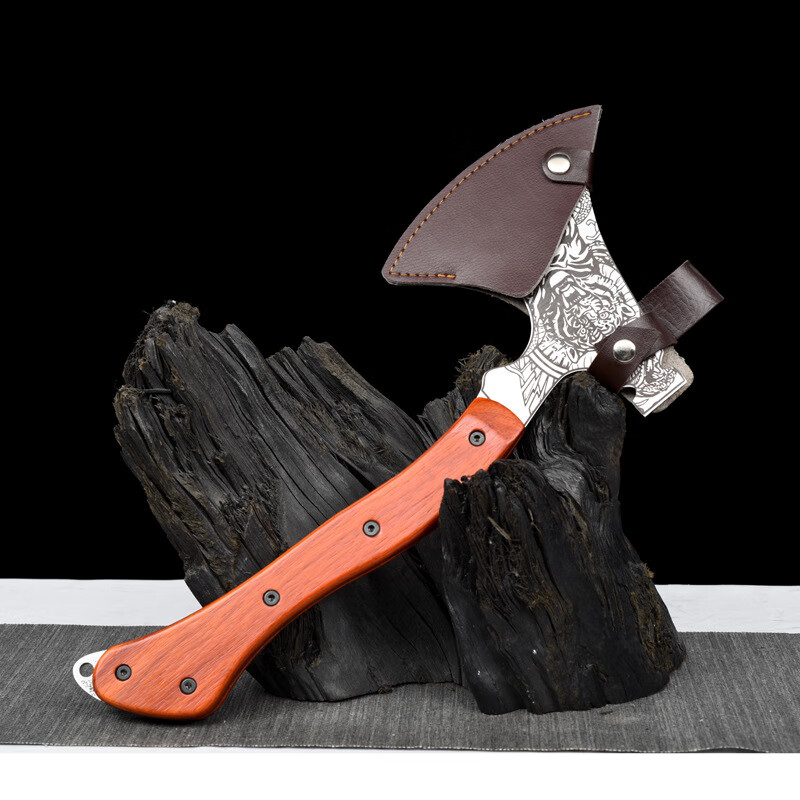 采岑不锈钢斧头龙泉市家用手工锻打菜刀斩骨刀剁骨刀农用战斧刀具 虎啸战斧+皮套+礼盒 如图色