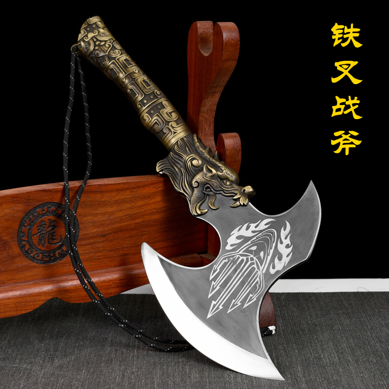 龙虎斩龙泉锻打砍骨斧厨房商用斩猪牛羊大骨刀屠夫肉摊肉联厂锋利剁骨刀 铁叉战斧【带皮套】