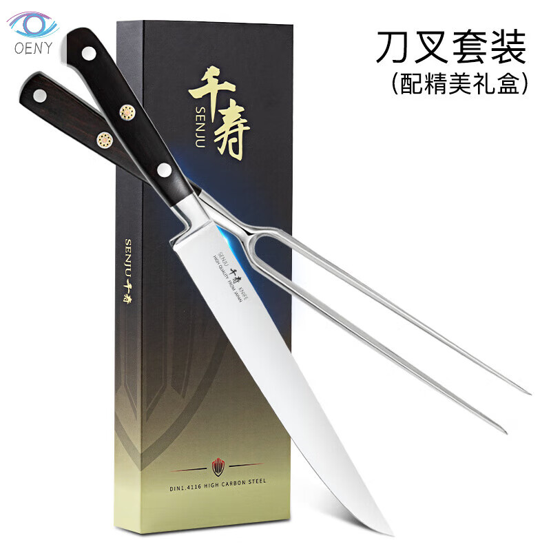 千寿同款西餐刀切牛排刀厨师铁板烧专用刀叉火腿烤肉刀战斧牛扒分 黑
