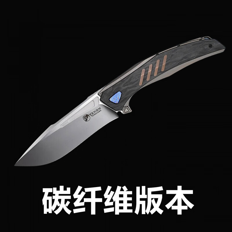 溥畔战斧凯文VENOM折叠刀钛合金M398钢折叠刀户外把玩防身口袋EDC 灰色 60°以上 x 9.8cm x 120mm