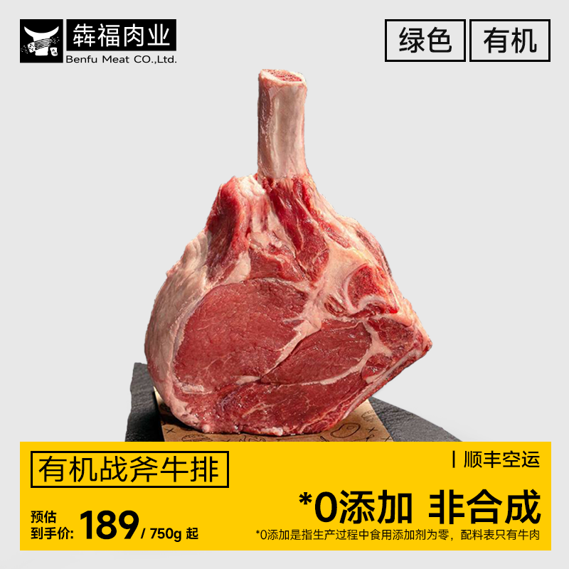 犇福国产原切大战斧牛排750g(1片)手工非腌制草饲谷饲 冷冻牛肉生鲜 原产地