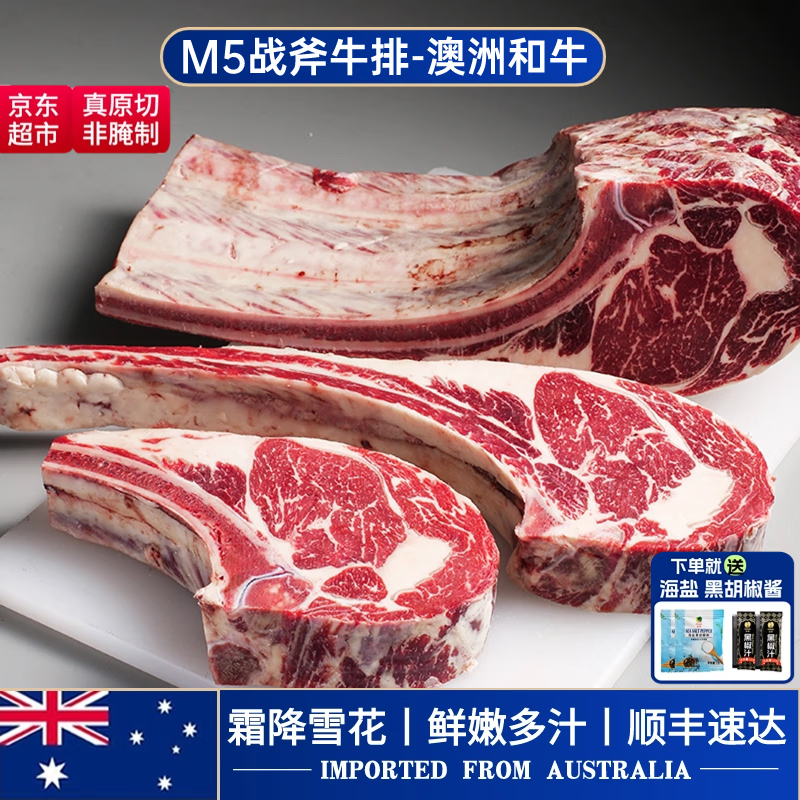 胖东来同款大利亚风味技术谷饲和牛战斧牛排M6原切雪花团购新代购 和牛战斧(500gX2片) 1000g