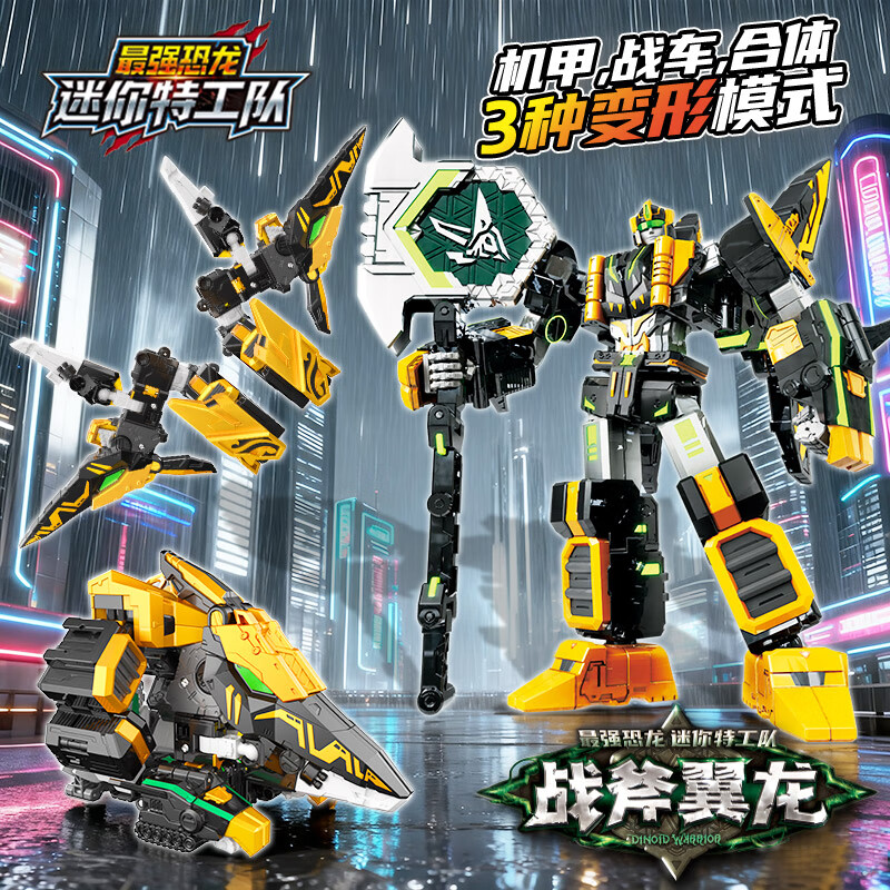 迷你特工队X8最强恐龙玩具战斧翼龙机器人3形态可合体后飞翼变形机甲男孩礼物