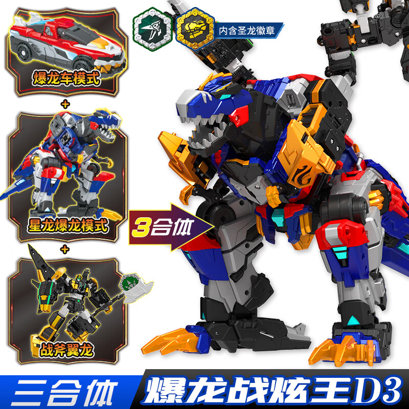 迷你特工队X8最强恐龙暴龙战炫王第八季变形9合体机甲玩具机器人男霸王龙礼物 豪华版暴龙战炫王D3【三合体含战斧翼龙】