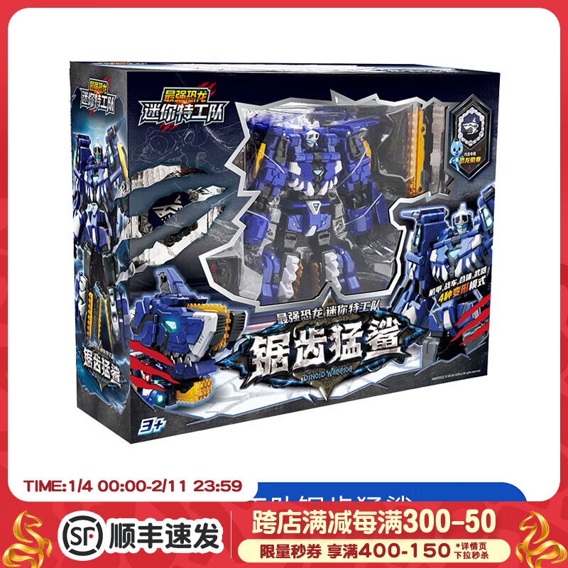 玩具反斗城(TOYSRUS)迷你特工队战斧翼龙冰刃剑齿虎霸王龙机甲变形机器人玩具新年礼物 迷你特工队锯齿猛鲨48920