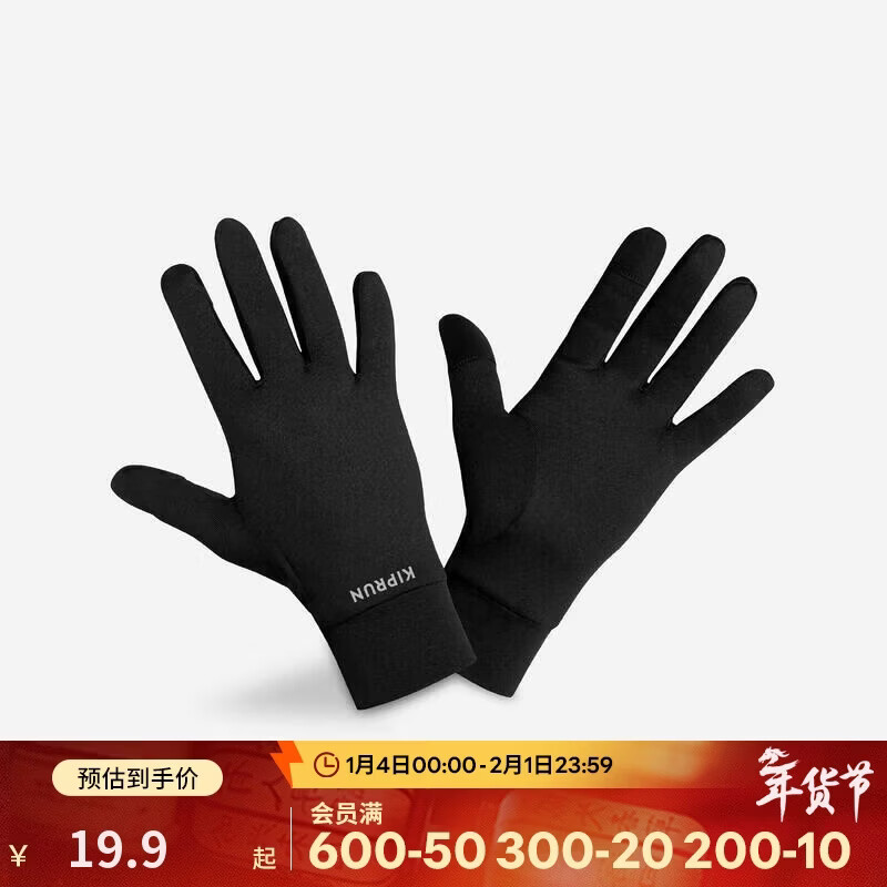 迪卡侬户外运动男女跑步健身骑行轻薄舒适保暖触屏手套纯黑色L-4564122