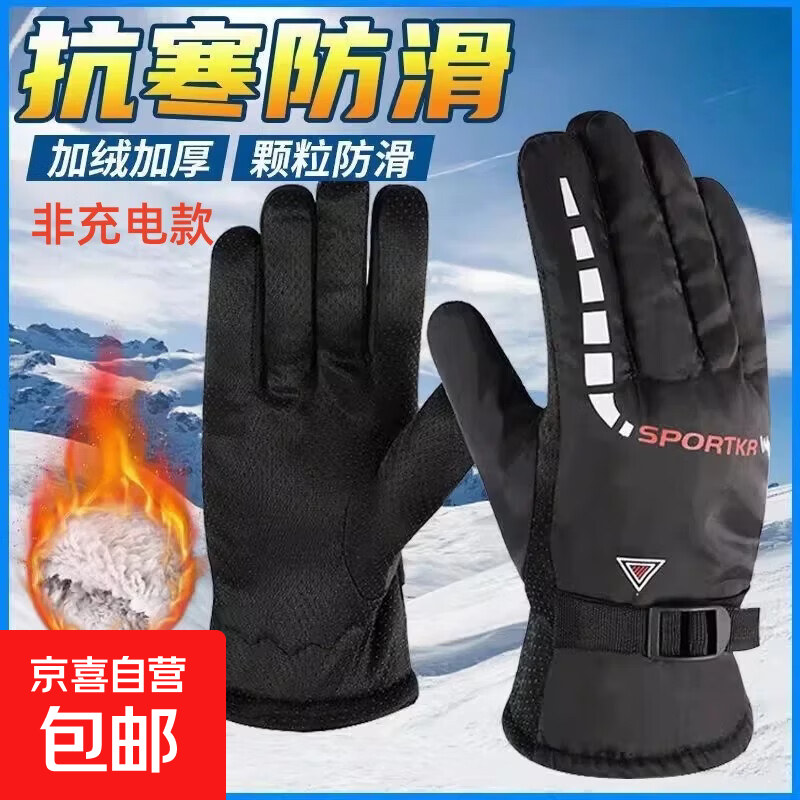 【京东物流】手套男士冬季加绒骑行电动车防滑触屏开车保暖手套女 【掌心防滑 可触屏】男士黑色 均码 1双 掌围女17-21男18-23cm