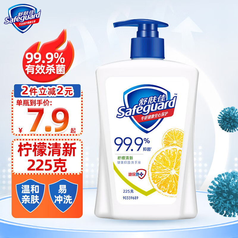 舒肤佳洗手液99%抑菌杀菌消毒清洁清香便携按压瓶儿童成人家庭装 柠檬清新225克