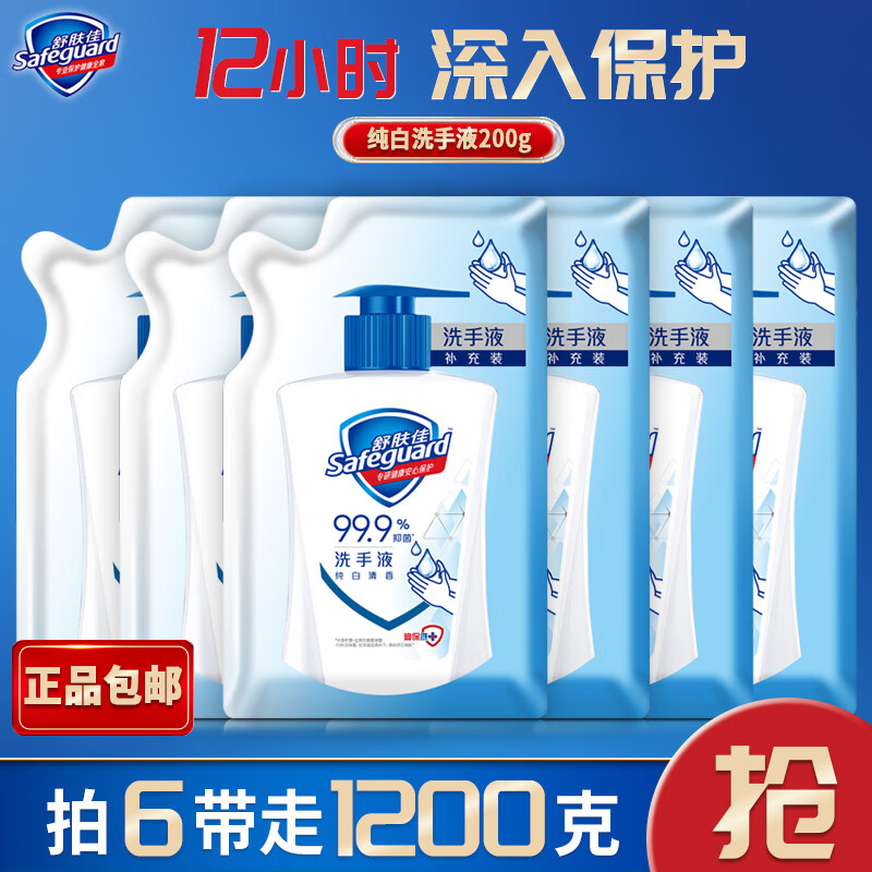 舒肤佳洗手液纯白清新柠檬抑菌抗菌便携除菌按压洗手液家用混合装420克 补充装200g*6袋