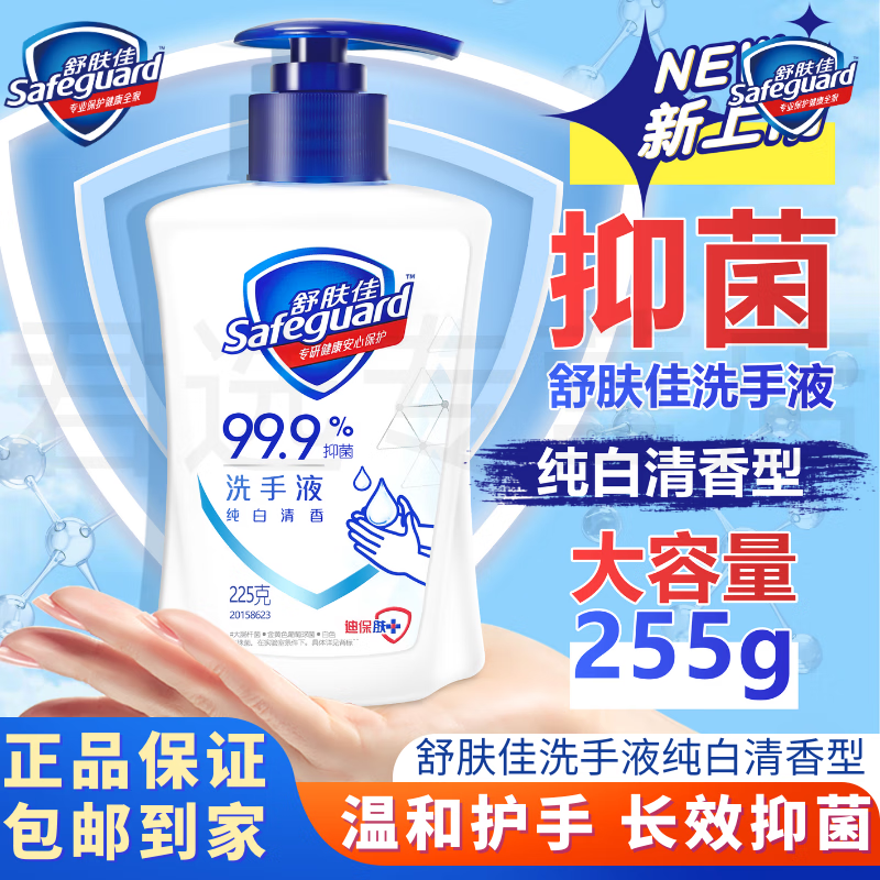 舒肤佳洗手液抑菌纯白家用瓶装清新柠檬留香便携小瓶按压易冲洗洗手液 纯白 225g*1瓶 纯白清香