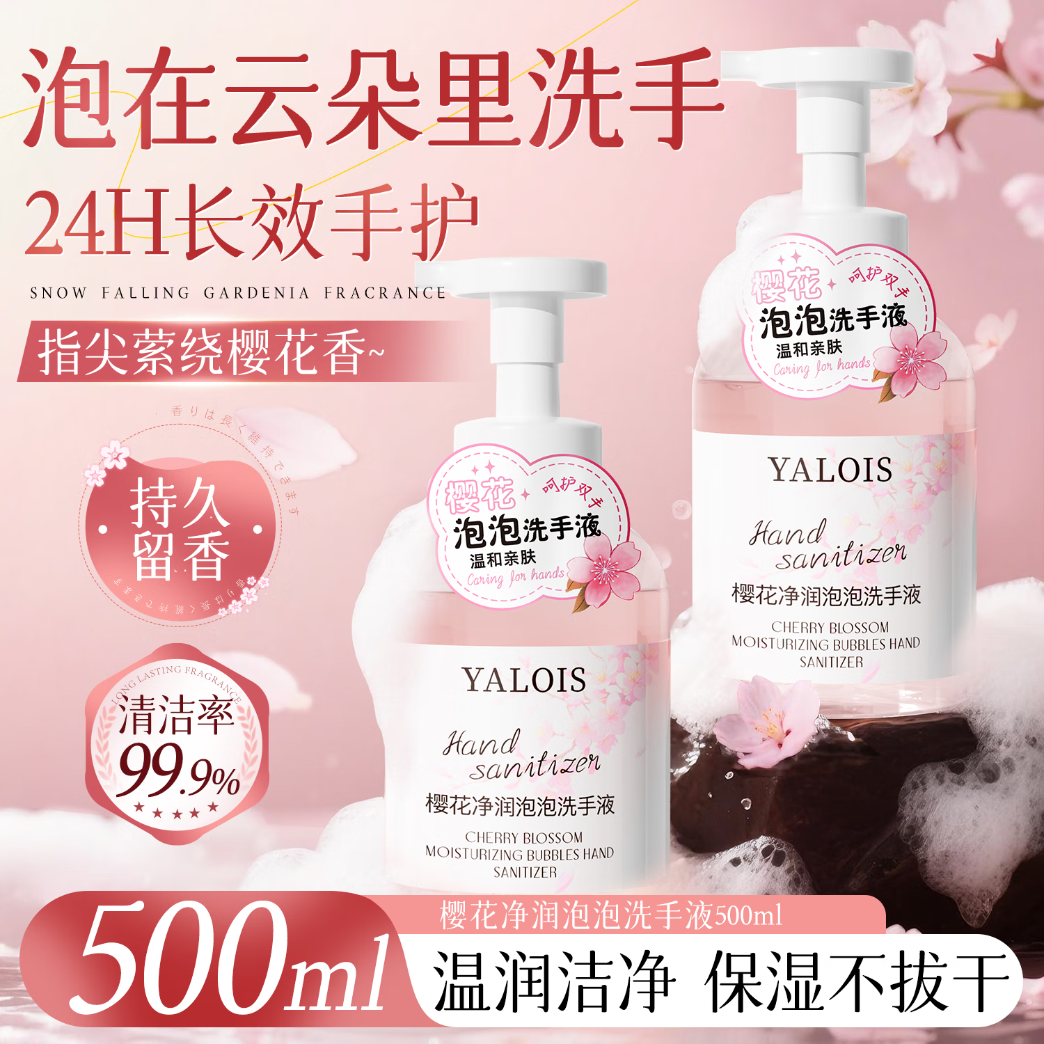娅洛思樱花净润泡泡洗手液500ml抑菌杀菌儿童泡沫型洗手液便携补充装