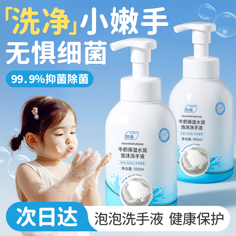 ORGINESE牛奶洗手液水润保湿泡沫型宝宝清洁杀抑菌家庭便携儿童易冲洗护手