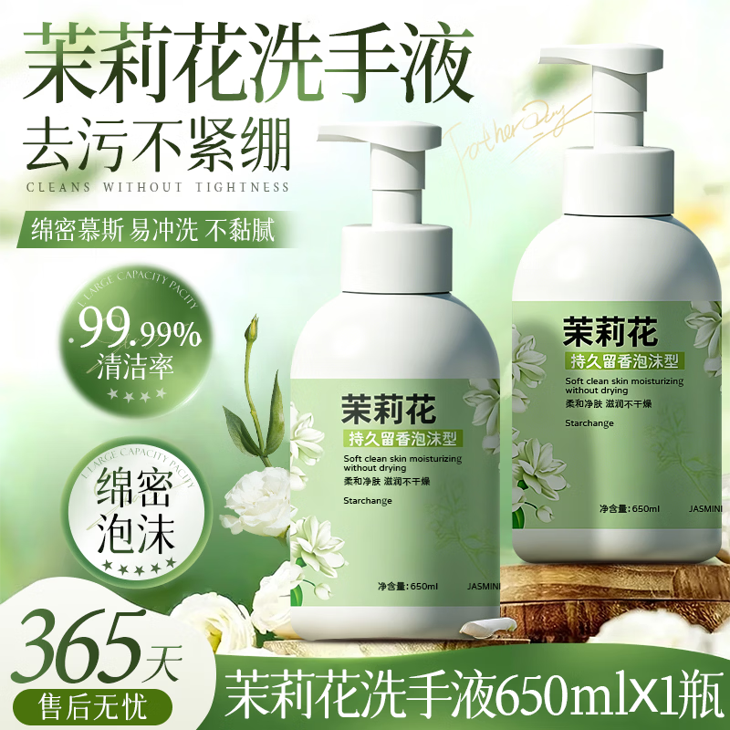 STARCHANGE茉莉花洗手液泡沫型宝宝清洁抑菌家庭装便携按压 茉莉花泡沫洗手液 650ml*1瓶