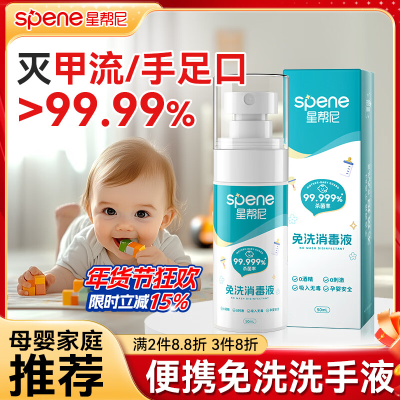 星帮尼儿童免洗洗手液婴儿宝宝专用杀菌抑菌旅行装可上飞机便携消毒喷雾