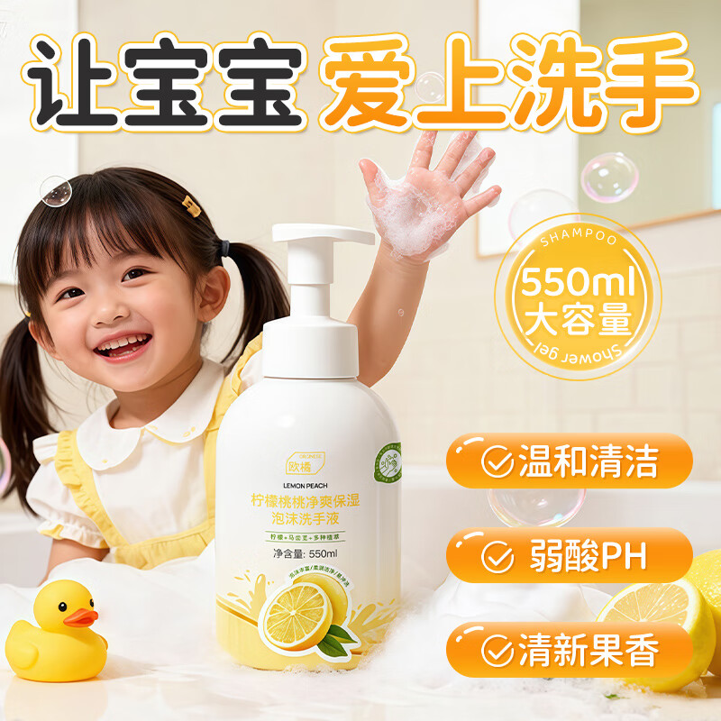 ORGINESE柠檬洗手液水润保湿泡沫型宝宝清洁杀抑菌家庭便携儿童易冲洗护手