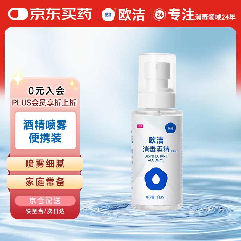 欧洁75%酒精喷雾100ml便携装 杀菌消毒免洗速干洗手液居家办公抑菌