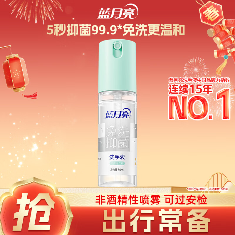 蓝月亮免洗洗手液迷迭香50ml 免洗速干 抑菌99.9% 无酒精旅行便携