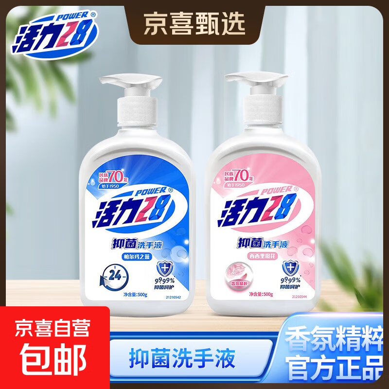 【活动专享】温和护手润肤洗手液500g瓶按压便携式抑菌儿童通用 粉色*1瓶+蓝色*1瓶