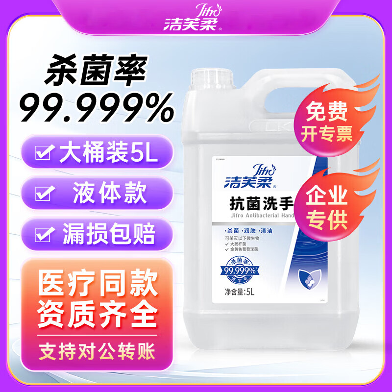 洁芙柔抗菌洗手液补充装5L利康LK消毒医用杀菌抑菌酒店无香批发大桶10斤