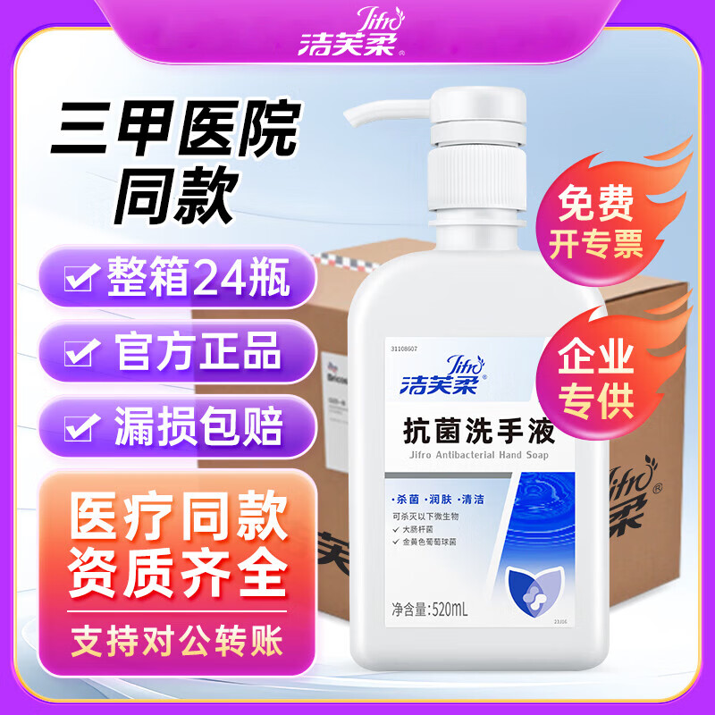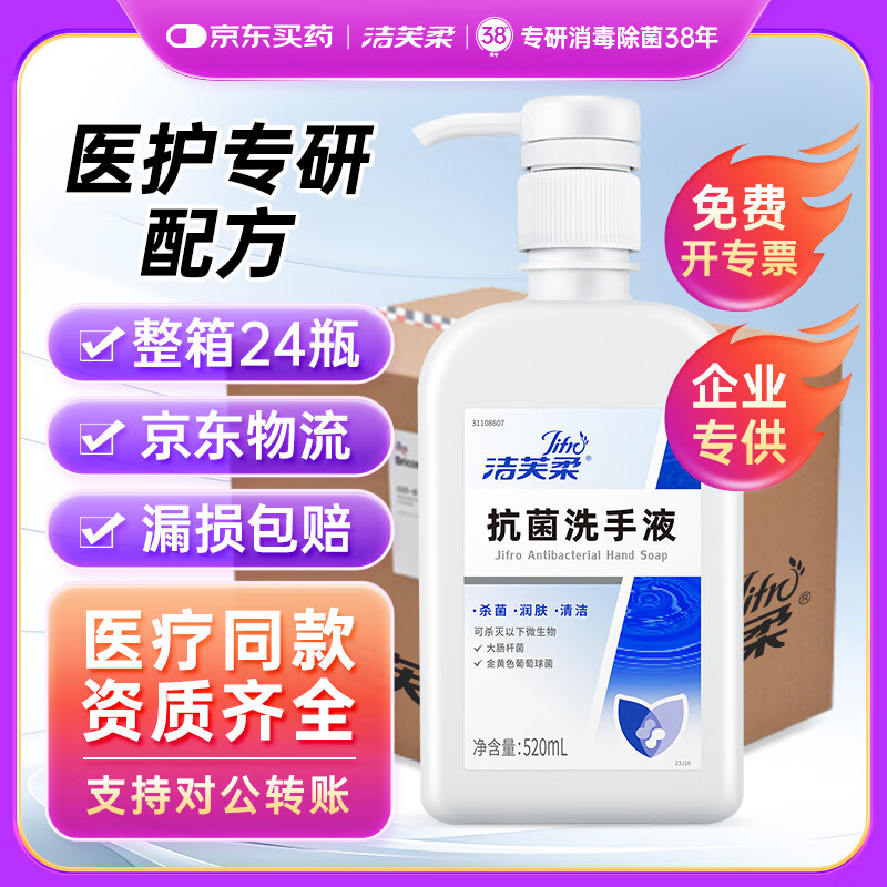 洁芙柔抗菌洗手液520ml*24整箱医用滋润护手杀菌替抗菌抑菌通用