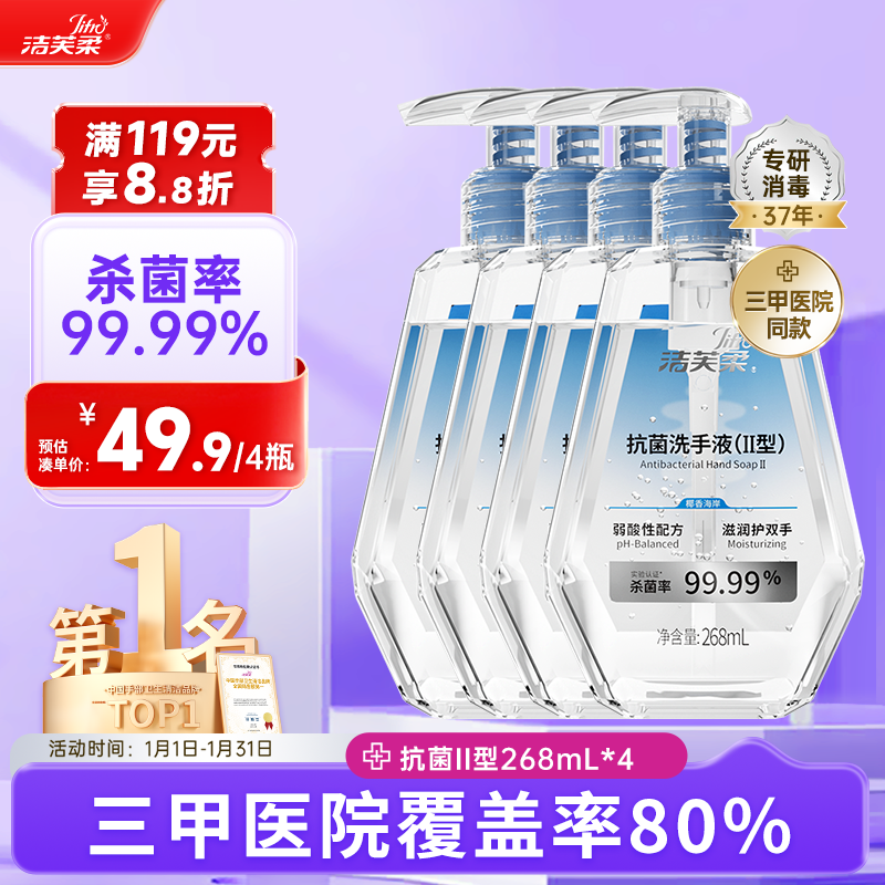洁芙柔抗菌洗手液268mL*4医用水洗清洁杀菌消毒抑菌滋润护手儿童成人
