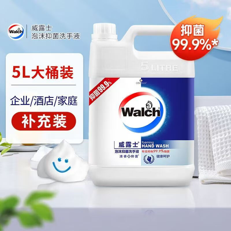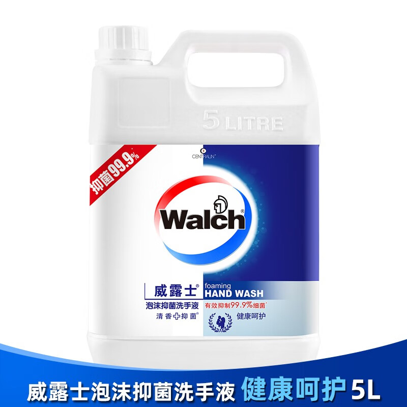 Walch威露士健康抑菌洗手液补充装5L泡沫杀菌99.9家庭酒店餐厅10斤大桶 泡沫抑菌洗手液5升