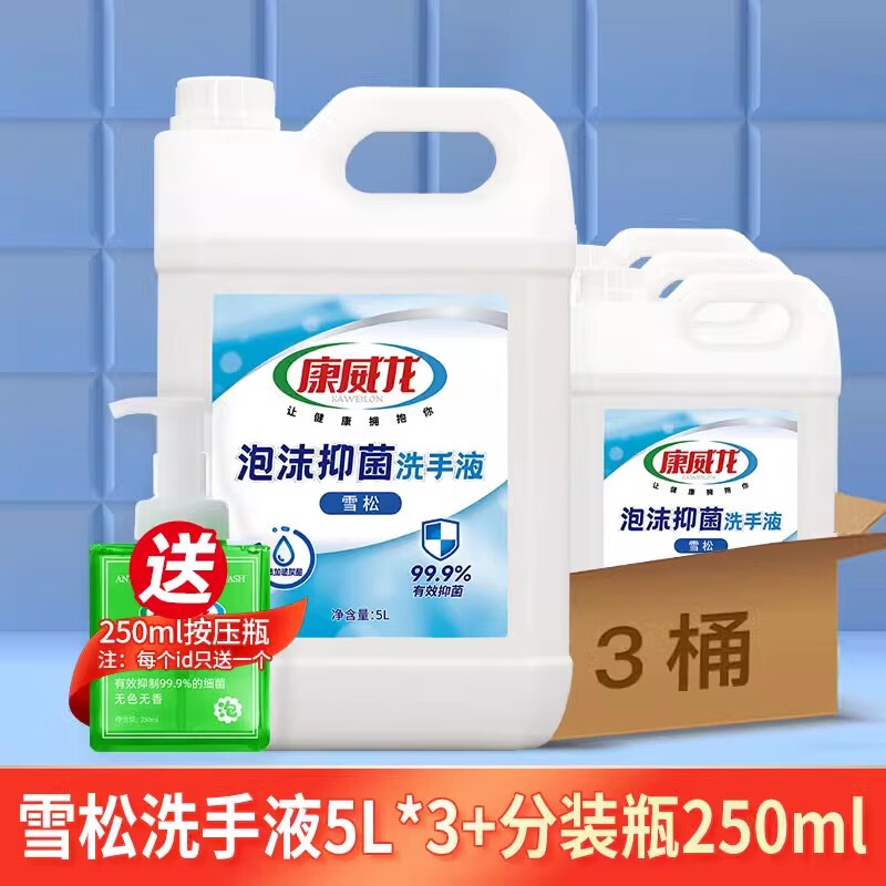 康威龙抑菌泡沫洗手液补充装自动感应替换雪松10斤大桶家用 5kg泡沫洗手液(雪松)*3