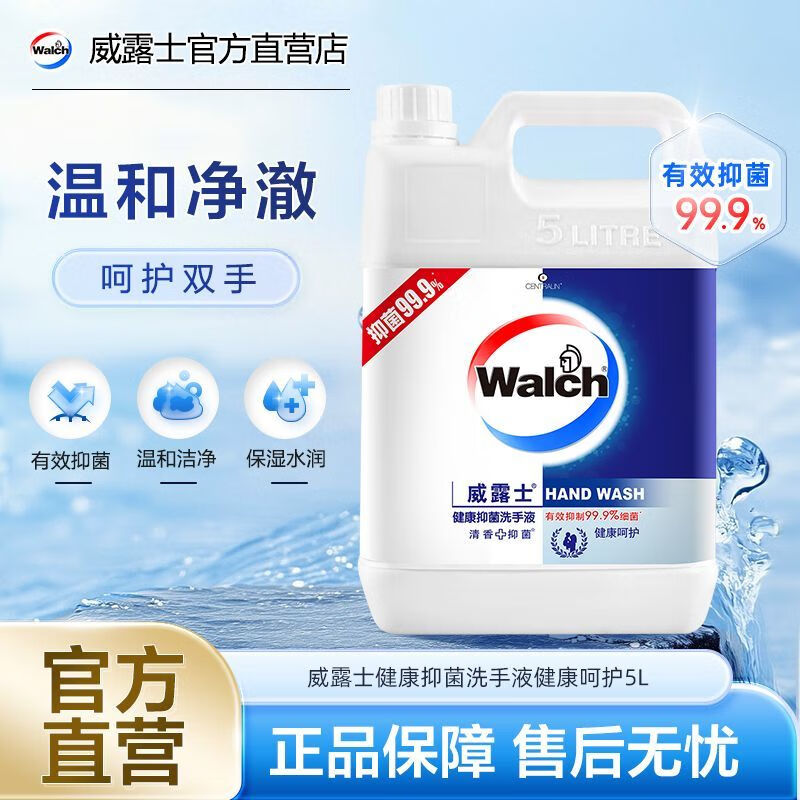 威露士WALCH【10斤】威露士洗手液大桶补充装5L健康呵护倍护滋润酒店餐厅家用 健康抑菌乳液款