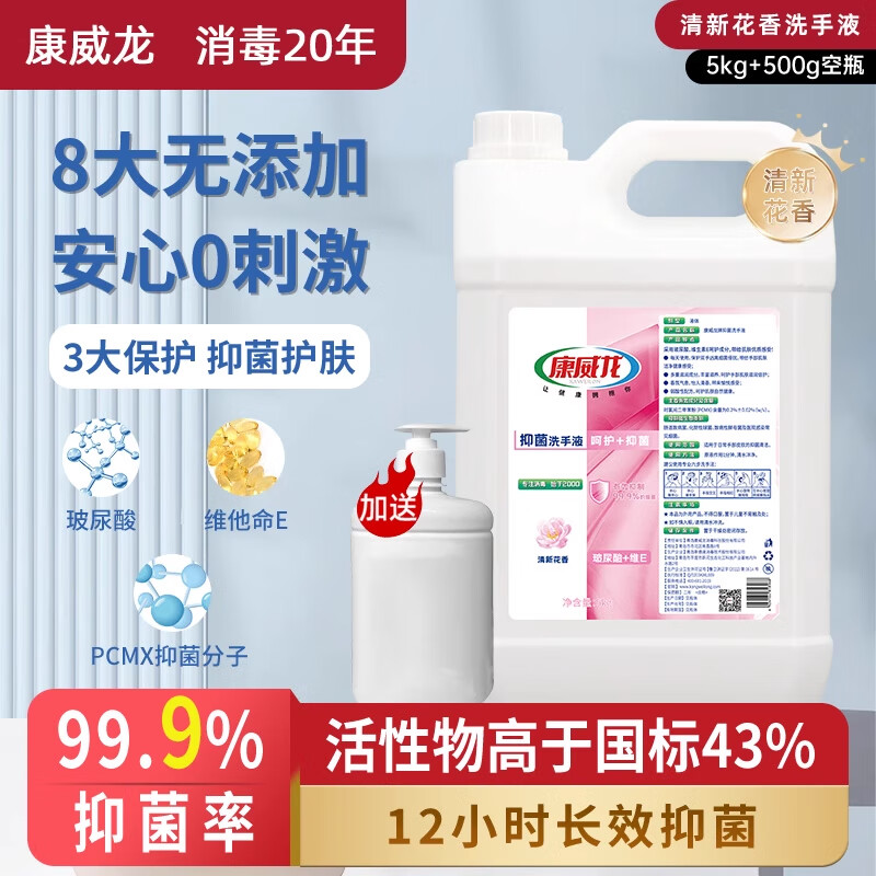康威龙花香杀菌洗手液5KG大桶香氛母婴可用消字号清洁必备 【抑菌25年热卖款】5kg装花香