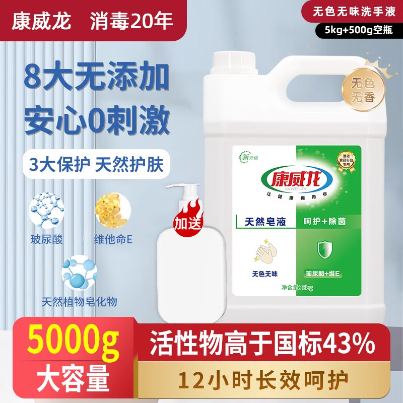 康威龙22kg无色无香健康天然皂液洗手液大桶装杀菌清洁必备 【专业抑菌25年】健康洗手皂液皂液500ml