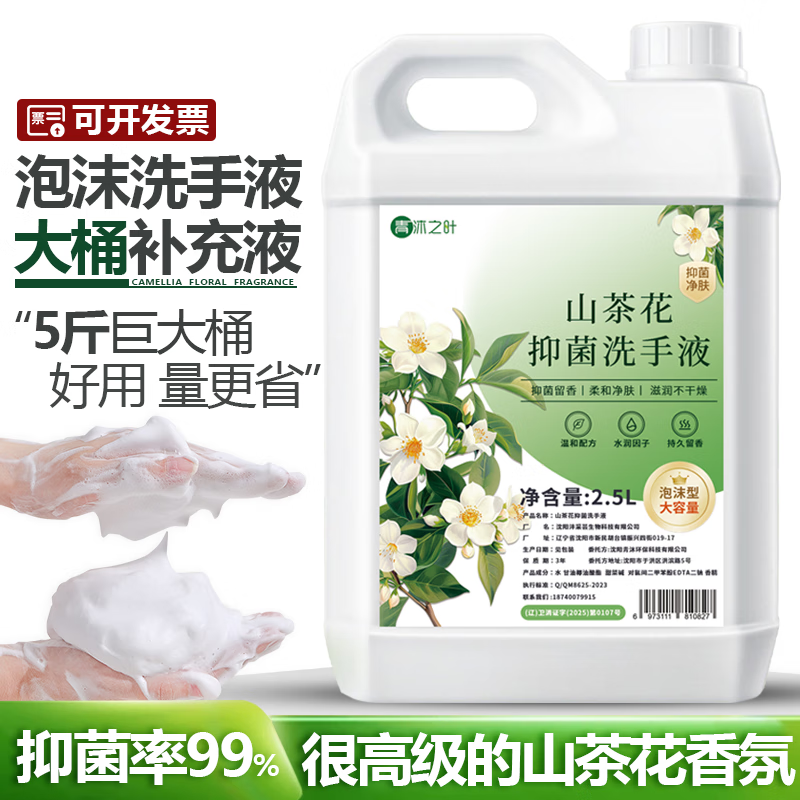 圣洁康山茶花洗手液补充装5斤 儿童家庭酒店餐厅抑菌滋润泡沫洗手液大桶 泡沫款【山茶花】10斤装补充液