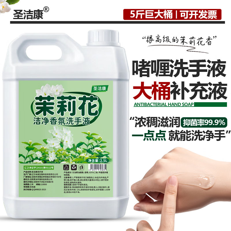 圣洁康茉莉花香抑菌洗手液大桶洗手液补充液杀菌抑菌消毒酒店餐厅家商用 【抑菌率99%】茉莉花香洗手液5斤