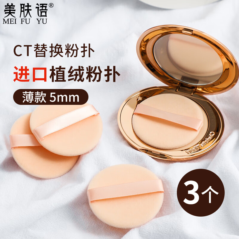美肤语双面植绒散粉扑粉饼(薄款圆形)3个替换蜜粉扑定妆化妆MF8559