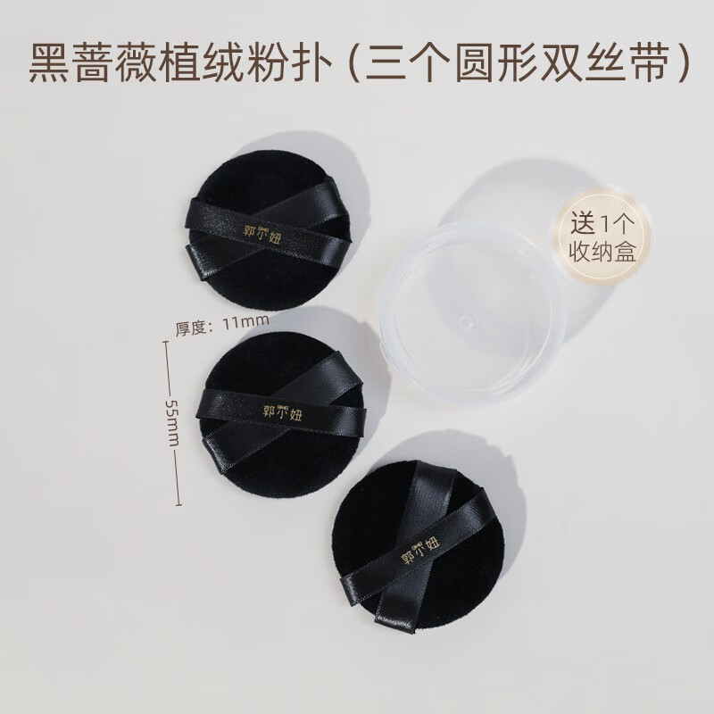 GUOXIAONIU郭小妞黑蔷薇高密植绒粉扑散粉干用面部修容定妆化妆海绵美妆工具 黑蔷薇植绒粉扑 3枚 圆形双丝带
