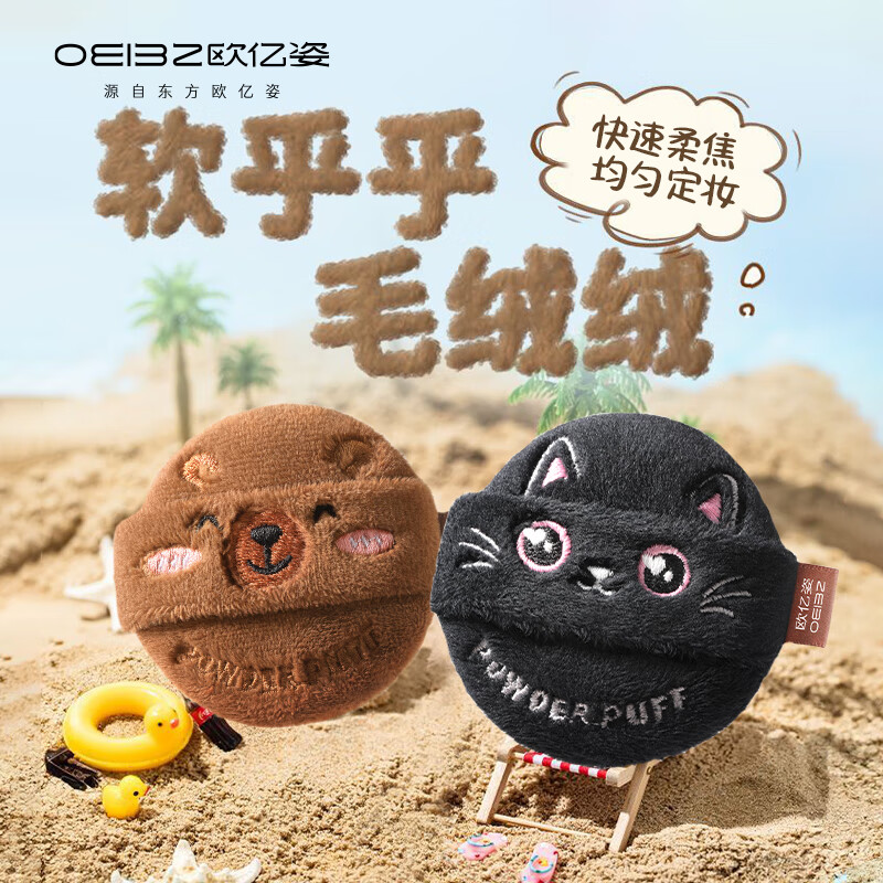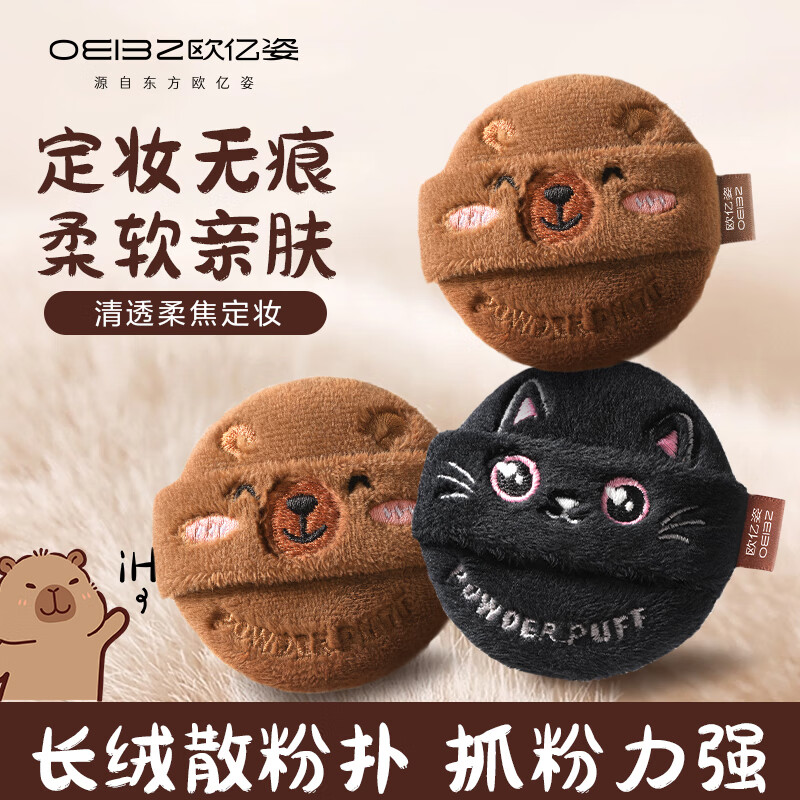 欧亿姿(oeiez)散粉扑长绒定妆粉扑植绒粉扑不易吃粉服帖不掉绒取粉力强1枚装