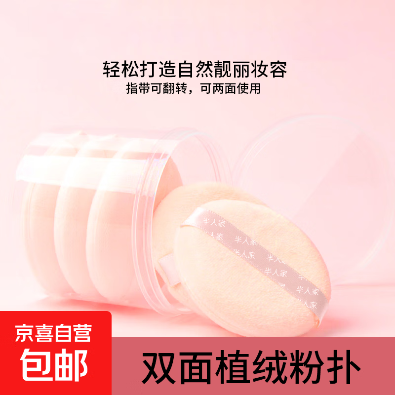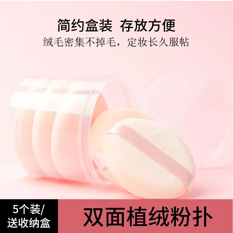 半人家植绒气垫散粉粉扑不吃粉毛绒大绒面蜜粉粉饼专用海绵面扑化妆工具 植绒粉扑 5枚 【配盒装】 超软不吃粉