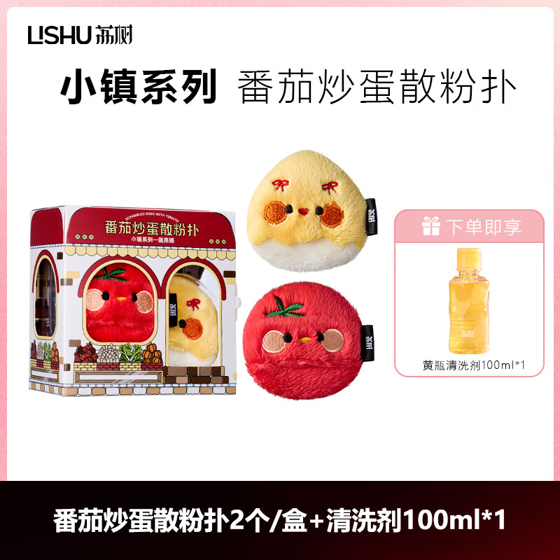 荔树小镇系列番茄炒蛋散粉扑长绒粉扑粉饼蜜粉定妆植绒化妆粉扑 番茄炒蛋散粉扑 2枚 +清洗剂100ml