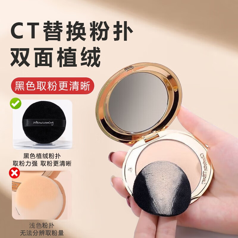 NHGAD植绒粉扑圆形 CT适配粉饼散粉扑定妆超薄不吃粉替换装 黑色