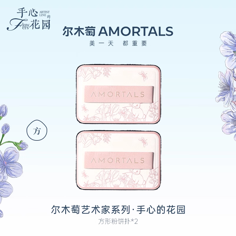 尔木萄艺术家花园系列植绒粉扑散粉扑定妆粉饼粉扑不易吃粉长短绒 方形粉饼扑 2枚