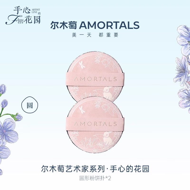 尔木萄艺术家花园系列植绒粉扑散粉扑定妆粉饼粉扑不易吃粉长短绒 圆形粉饼扑 2枚